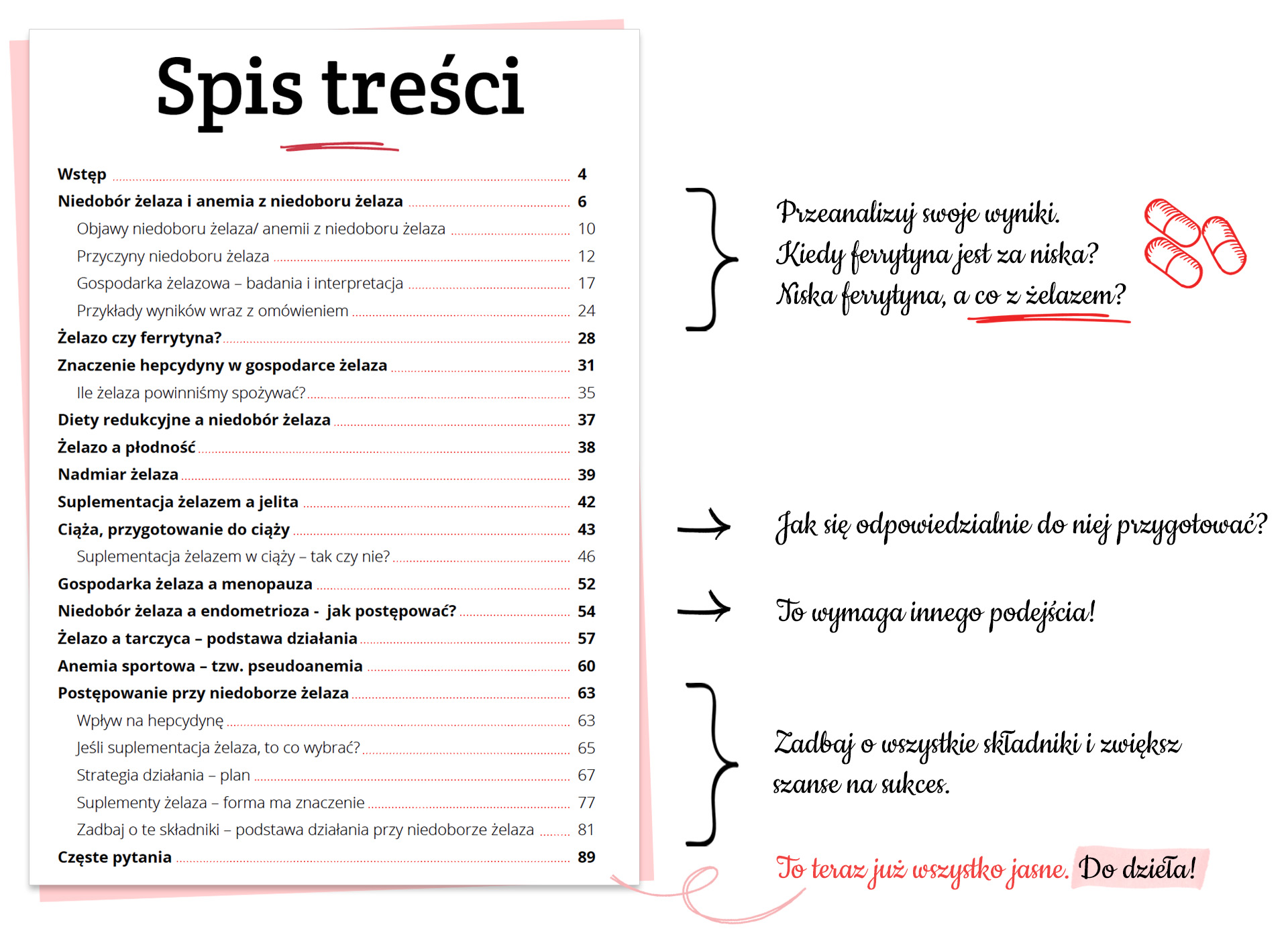 Jeśli tak zrobisz, to oznacza, że zmęczenie, osłabienie i brak energii do działania nie przeszkadzają Ci jeszcze w tak dużym stopniu, by coś z tym zrobić. Jeśli już masz niedobór żelaza, to przez brak Twoich działań, prawdopodobnie niedługo rozwinie się anemia, i wtedy znajdziesz czas i ochotę na przeczytanie tego e-booka. Trzymam kciuki, by to jednak było wcześniej!